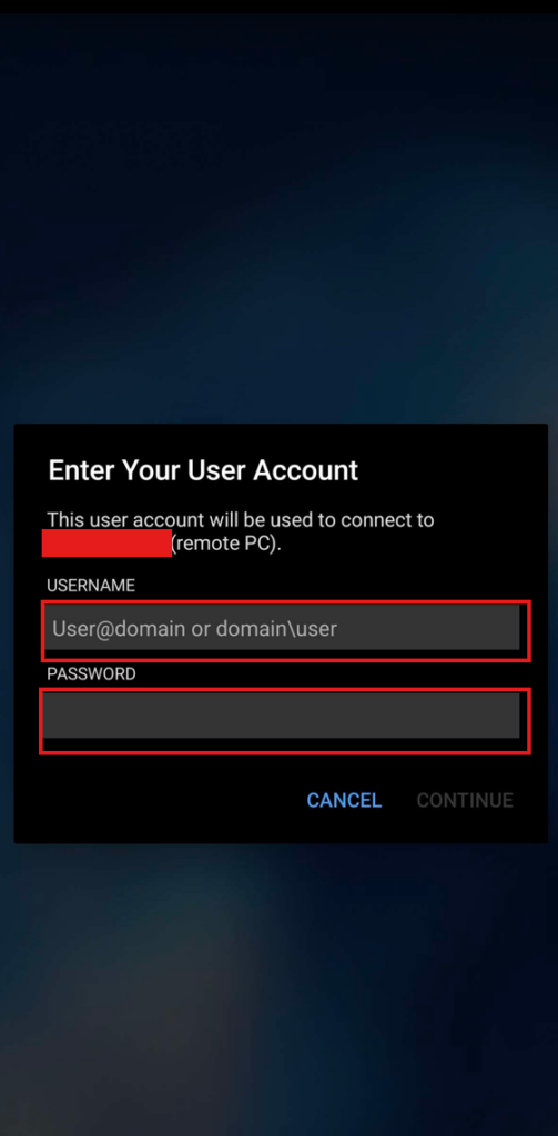 ขั้นตอนที่ 4 เลือกไปที่เครื่องที่เราใส่ไอพีไว้ เพื่อใส่Username และ Password และกดContinue
