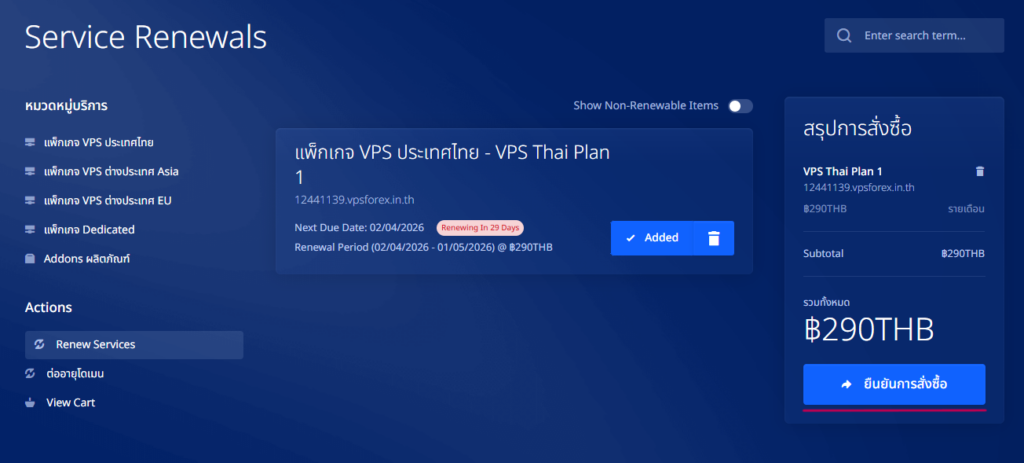 วิธีการต่ออายุ VPSFOREX ล่วงหน้า